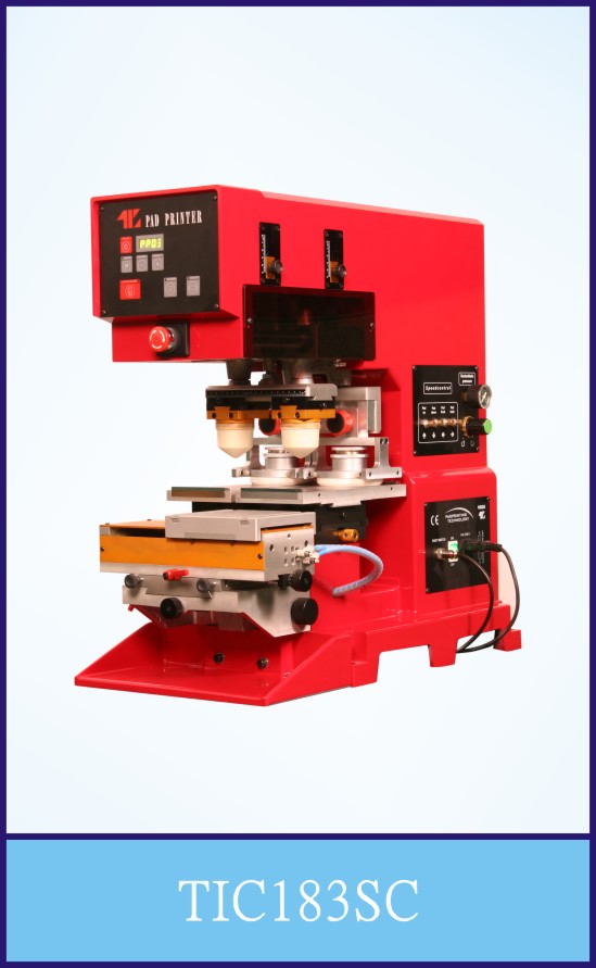 中型雙色密閉式油盅移印機,氣動直推式工作臺